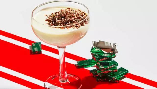將巧克力粉和牛奶倒入鍋中加熱并攪拌均勻,直至巧克力粉和牛奶充分融合,在馬克杯中倒入綠查特酒和薄荷利口酒,頂部澆上熱巧克力,用吧勺攪拌,并用棉花糖和糖果裝飾。