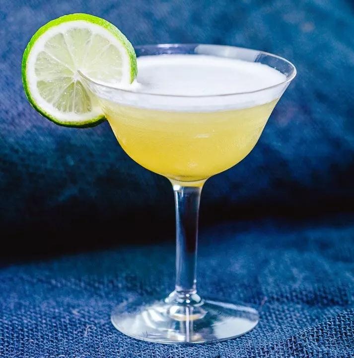 做法:將所有成分加入混合玻璃杯中,用冰攪拌至混合均勻,然后將蛋清乳化,過濾加入冰酒杯裝飾完成。