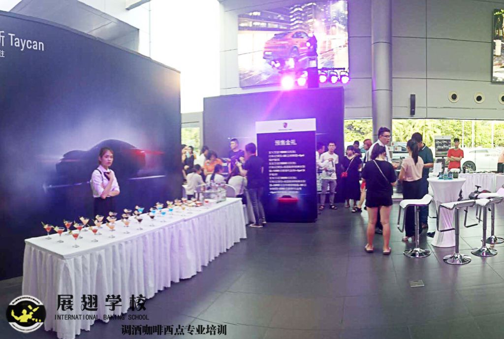 2019年6月22日,東莞寮步保時捷中心答謝晚會,佛山展翅調(diào)酒咖啡西點培訓(xùn)學(xué)校學(xué)員戶外實踐,一個好的調(diào)酒師就是要不斷的去實踐,不斷的去磨練,佛山展翅培訓(xùn)學(xué)校不僅能學(xué)到專業(yè)的知識,還能給學(xué)員提供實踐的機會,www.tzkljx.cn