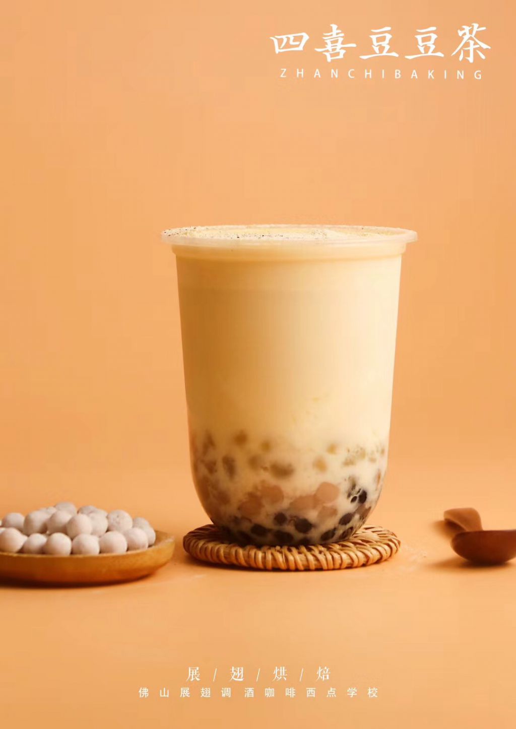 覆以秘制豆乳奶蓋與芋圓波波,