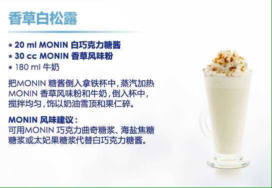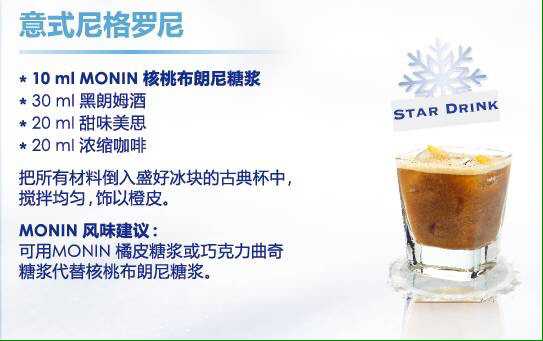 MONIN不僅有可口的冬季熱飲,還有精彩絕倫的雞尾酒,源源不斷的創(chuàng)新飲品概念,隨時(shí)打造一杯無論視覺還是味覺也同樣華麗的熱巧克力或咖啡飲品。