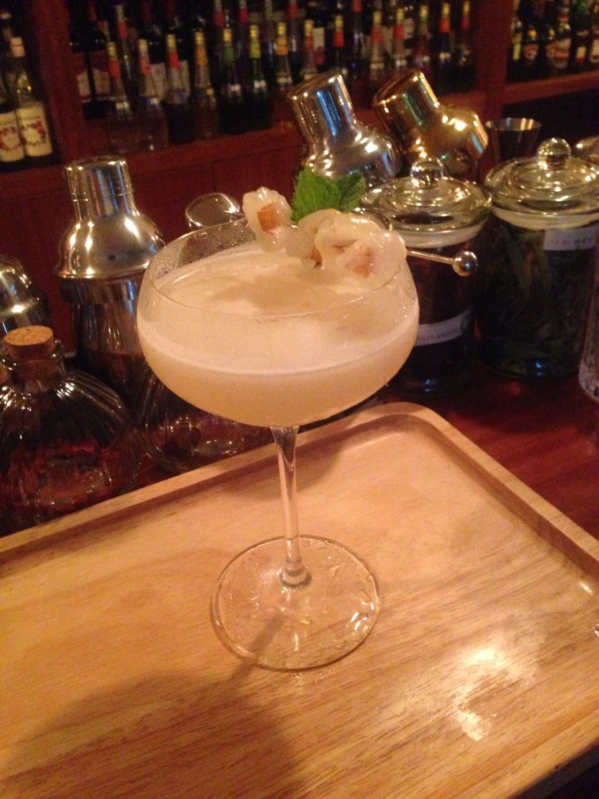 加冰Shaker,濾入加冰的雞尾酒杯。以荔枝薄荷葉裝飾。