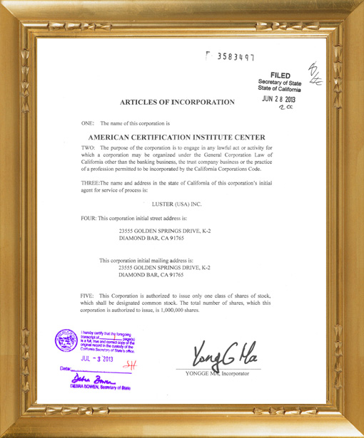 20138月起,經ACIC美國總部同意,ACIC在亞太地區開始使用中文名稱為“美國國際資質認證中心”,并將此中文名稱在香港政府進行了注冊備案,受到法律保護。
